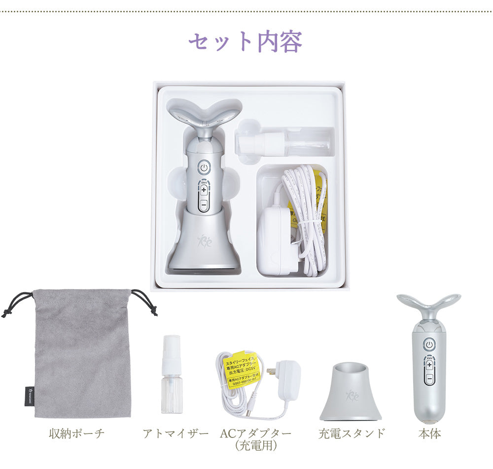 | 付属品 | 充電スタンド、AC アダプター(充電用)、アトマイザー、収納ポーチ、取扱説明書(1年間保証書付) |